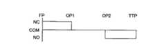 上述した一連の動作におけるNO端子137からの出力およびNC端子139からの出力を、アクチュエータ132の位置を横軸にとって表したのが図6である。図6を参照すると、アクチュエータ132がFPからOP1およびOP2を経てTTPへ移動する間、NC端子139からの出力はFPからOP2までの間でオンであり、NO端子137からの出力はOP1からTTPまでの間でオンであることがわかる。したがって、OP1からOP2までの間では、NC端子139からの出力およびNO端子137からの出力はいずれもオンである。NO端子137およびNC端子139からの出力は注入制御ユニット101(図2参照)へ入力される。  FIG. 6 shows the output from the NO terminal 137 and the output from the
