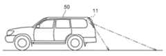 画像情報取得部12は、撮像装置11により撮像した自車両の周辺の画像情報Gを取得する画像情報取得手段として機能する。ここで、撮像装置11は、撮像素子を備えた車載カメラ等であって、少なくとも自車両50の周辺の道路の路面を撮像可能な位置に設けられている。このような撮像装置11としては、例えば、図4に示すような自車両50の後方の路面を撮像するバックカメラを用いると好適である。画像情報取得部12は、撮像装置11により撮像した撮像情報を、フレームメモリ(不図示)などを介して所定の時間間隔で取り込む。この際の画像情報Gの取り込みの時間間隔は、例えば、10〜50ms程度とすることができる。これにより、画像情報取得部12は、撮像装置11により撮像した複数フレームの画像情報Gを連続的に取得することができる。ここで取得された画像情報Gは、画像認識部18へ出力される。4). Image Information Acquisition Unit The image