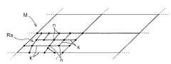 地図データベースDB1は、所定の区画毎に分けられた地図情報Mが記憶されたデータベースである。図2は、地図データベースDB1に記憶されている地図情報Mの構成の例を示す説明図である。この図に示すように、地図情報Mは、交差点に対応する多数のノードnと、各交差点間を結ぶ道路に対応するリンクkとの接続関係により道路ネットワークを表す道路情報Raを有している。各ノードnは、緯度及び経度で表現された地図上の位置(座標)の情報を有している。各リンクkは、ノードnを介して接続されている。また、各リンクkは、その属性情報として、道路種別、地域種別、リンク長、道路幅、リンク形状を表現するための形状補間点等の情報を有している。ここで、道路種別情報は、例えば、自動車専用道路、市街道路、細街路、山岳路等のように、道路を複数の種別に区分した際の道路種別の情報である。また、地域種別情報は、例えば、関東地方や関西地方等の地方、都道府県や市区町村等の行政区画等のように、リンクkに対応する道路が設けられている地域を複数に区分した際の地域種別の情報である。これらのリンクkの属性情報が、道路属性情報Rb(図1参照)に相当する。そして、本実施形態においては、この地図データベースDB1が、本発明における地図情報記憶手段に相当する。尚、図2においては、1つの区画の道路情報Raのみを図示し、他の区画の道路情報Raは省略して示している。1. Map database The map database DB1 is a database in which map information M divided into predetermined sections is stored. FIG. 2 is an explanatory diagram showing an example of the configuration of the map information M stored in the map database DB1. As shown in this figure, the map information M has road information Ra representing a road network by connection relations between a large number of nodes n corresponding to intersections and links k corresponding to roads connecting the intersections. . Each node n has information on the position (coordinates) on the map expressed by latitude and longitude. Each link k is connected via a node n. Each link k has information such as a road type, a region type, a link length, a road width, and a shape interpolation point for expressing a link shape as attribute information. Here, the road type information is information on the road type when the road is divided into a plurality of types, such as an automobile-only road, a city road, a narrow street, a mountain road, and the like. In addition, the region type information is divided into a plurality of regions where roads corresponding to the link k are provided, such as regions such as the Kanto region and the Kansai region, and administrative divisions such as prefectures and municipalities. Information on the type of the area. The attribute information of these links k corresponds to the road attribute information Rb (see FIG. 1). And in this embodiment, this map database DB1 is corresponded to the map information storage means in this invention. In FIG. 2, only the road information Ra for one section is shown, and the road information Ra for other sections is omitted.