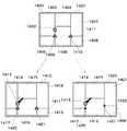 図4(b)において、補助線415は画像枠領域405の左側の辺の延長線であり、補助線416は画像枠領域405及び406の境界の延長線である。同様に、補助線417は画像枠領域407の下側の辺の延長線であり、補助線418は画像枠領域406及び407の境界の延長線である。  In FIG. 4B, the