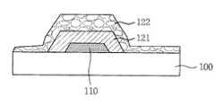 ゲート電極110は透明絶縁基板100上にアルミニウム(Al)または銅(Cu)などを含む金属物質によって形成され、ゲート絶縁膜120はゲート電極110を覆う領域においてガラス組成物でプリンティング工程と焼結工程を利用して形成されている。  The