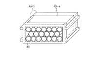 一方、集合体におけるパイプ状部材同士の隙間は、中空のままとしてもよい。隙間に冷媒を流したり、ヒーターを配置したりすることで、電池ブロックを加熱または冷却しやすくなるからである。例えば、図11に示すように、冷媒ガス500を隙間に流すようにしてもよい。  On the other hand, the gap between the pipe-like members in the assembly may remain hollow. This is because it is easy to heat or cool the battery block by flowing a refrigerant in the gap or arranging a heater. For example, as shown in FIG. 11, the