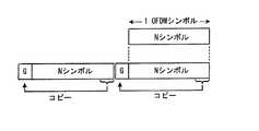 無線通信においては複数の反射波が異なる経路で受信機に到達するマルチパスが問題となる。これは、異なる反射波がある時間差をもって受信機に到達した結果、前後のシンボルが重なり合ってしまうことによるシンボル間干渉として受信特性を劣化させる大きな要因となる。これを防ぐための方式としてガードインターバルを挿入することはOFDMに限らず有効な方式である。OFDMの場合は、図14で説明したように1シンボル内の信号の一部を前半にコピーすることにより、ガードインターバルとすることが一般的に行われている。マルチパスによる最大遅延がガードインターバル長よりも小さい場合は、マルチパスによるシンボル間干渉を完全に除去することが出来る。この時、ガードインターバル長を大きくするほど大きな遅延パスの影響を除去できる一方で伝送効率が低下し、ビットレートの低下を招く。このため、ガードインターバル長は最大パス遅延程度に設定するのが望ましい。しかし、携帯電話システムにOFDM無線通信方式を適用する場合、様々なセル配置・セル半径に対応する必要があり、システム全体として最適なガードインターバル長を決定することは不可能である。また、同一セル内であっても場所によって遅延パスの分布が異なるため最適なガードインターバル長も異なる。-Prior art In wireless communication, multipath in which a plurality of reflected waves reach the receiver through different paths becomes a problem. This is a major factor that degrades reception characteristics as inter-symbol interference due to overlapping of preceding and succeeding symbols as a result of reaching different times of reflected waves to the receiver. Inserting a guard interval as a method for preventing this is an effective method, not limited to OFDM. In the case of OFDM, as described with reference to FIG. 14, a guard interval is generally performed by copying a part of a signal in one symbol to the first half. When the maximum delay due to multipath is smaller than the guard interval length, intersymbol interference due to multipath can be completely eliminated. At this time, as the guard interval length is increased, the influence of a large delay path can be removed, while the transmission efficiency is lowered and the bit rate is lowered. For this reason, it is desirable to set the guard interval length to about the maximum path delay. However, when the OFDM wireless communication system is applied to the mobile phone system, it is necessary to cope with various cell arrangements and cell radii, and it is impossible to determine the optimum guard interval length for the entire system. Even within the same cell, the optimum guard interval length differs because the delay path distribution varies depending on the location.