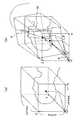図4は(ステップ5)におけるボリュームデータの変換を表したものである。図4の(a)で示したものは、変換する前のボリュームデータ記憶部2に記憶されているボリュームデータを示し、XとYとZ方向にそれぞれnピクセルから成る立方体内に被検体の頭部31に関するボリュームデータが収まっていることを示している。そして、図4(b)で示したものは、超音波を用いて治療をしている最中等に、被検体の頭部が動いた場合に対応させて、ボリュームデータを移動させる様子を示している。図2(a)に対して図4(b)では、先ず立方体の片隅の点(基準点)はOからO’へ移動されていて、例えば(0,0,0)から(0+αX,0+αY,0+αZ)のようになる。さらに基準点に対してボリュームデータの配置されるXとYとZへの方向は、図4(a)に対して角度が変わっている。この角度の変化は、X軸の回りの回転と、Y軸の回りの回転と、Z軸の周りの回転に分解され、それぞれの回転は次に表す回転行列で表現される。FIG. 4 shows the conversion of volume data in (Step 5). 4 (a) shows the volume data stored in the volume data storage unit 2 before conversion, and the subject's head is placed in a cube consisting of n pixels in the X, Y, and Z directions, respectively. This shows that the volume data related to the