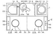 プローブ装置本体2は、ローダ部1とX方向に並ぶように当該ローダ部1に隣接して配置され、プローブ装置本体2の外装部分を構成する筐体22を備えている。この筐体22は仕切り壁20を介してY方向に2分割されており、一方の分割部分及び他方の分割部分は、夫々第1の検査部21A及び第2の検査部21Bを区画形成する外装体に相当する。