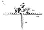 図14は、本実施の形態に係る挿入装置によって装着者の体表に固定される留置部材100を示す断面図である。留置部材100は、インスリン持続皮下注入法(CSII:Continuous Subcutaneous Insulin Infusion)に用いられる皮下注入器を構成するものであって、カニューラ100Aと、ベース部100Bと、隔壁100Cと、係止部100Dとを含む。なお、皮下注入器は、インスリン以外の薬液を体内に供給するための用途(たとえば疼痛治療など)にも適用可能である。  FIG. 14 is a cross-sectional view showing the indwelling