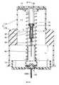 図6は、上記の挿入装置の動作における挿入動作の完了時の状態を示す断面図であり、図7は、図6におけるVII−VII断面に相当する断面図である。なお、図6,図7では、プランジャ10の底面がハウジング1の下端から若干突出しているが、これは、スプリング50の付勢力により、プランジャ10に当接する部分において装着者の体表に若干の凹みが生じるためである。  FIG. 6 is a cross-sectional view showing a state when the insertion operation is completed in the operation of the above-described insertion device, and FIG. 7 is a cross-sectional view corresponding to the VII-VII cross section in FIG. 6 and 7, the bottom surface of the