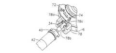 図16‐図18は、コネクタ40とポート本体6との間のロック接続を例示している。図16は、延長部78によって部分的に取り囲まれた継手34を示す組立分解斜視図である。図17は、コネクタ40が概ね継手34の周りに配置され、チューブ36が延長部78の外周スロット78cに整合している延長部78の断面図である。コネクタ40は、そのコネクタから外側に延出した一対のタブ40aおよび40bを含む。組み立てる際は、タブ40aおよび40bを延長部78の開口78aおよび78bに整合させて、コネクタ40を、チューブ36および継手34に沿って案内する。タブ40aおよび40bを外周スロット78cに整合させて、コネクタ40を回転させて所定の位置に固定する。回転の際、戻り止めエッジ78dが、タブ40aの回転の抵抗となるが、戻り止めエッジ78dは、タブ40aがこれを越えて図18に示されている固定位置まで回転できる寸法に形成されている。  FIGS. 16-18 illustrate the locking connection between the