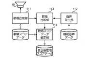 (6)上述の実施形態では、CPU11が、歌唱スコアデータに含まれるピッチデータと発音タイミングデータとを修正するようにしたが、修正する特徴データはこれに限らない。例えば、CPU11が歌詞間違いを検出するようにしてもよい。この場合は、CPU11が、模範音声データと合成音声データとの音韻の差分を検出し、その差分が小さくなるように、歌唱スコアデータの音韻データを修正するようにすればよい。この場合、音韻の差分の検出方法としては、例えば、模範音声データと合成音声データについて、フォルマントやケプストラムの差を検出するようにしてもよく、また、模範音声データに対して音声認識処理を施して音韻を検出するようにしてもよい。(6) In the above-described embodiment, the