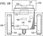 図3Aおよび3Bは、移動駆動ユニット20のある特定の実施形態のコンポーネントをより詳細に示している。特に、図3Aおよび3Bは、例示的な移動駆動ユニット20の正面図および側面図を含んでいる。移動駆動ユニット20はドッキング・ヘッド110、駆動モジュール120、ドッキング・アクチュエータ130および制御モジュール170を含む。さらに、移動駆動ユニット20は、移動駆動ユニット20、目録品ホルダー30および/または目録品システム10の他の適切な要素の位置を検出または決定するよう構成された一つまたは複数のセンサーを含みうる。図示した実施形態では、移動駆動ユニット20は位置センサー140、ホルダー・センサー150、障害物センサー160および識別情報信号送信機162を含む。  3A and 3B show in more detail the components of a particular embodiment of