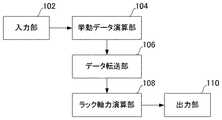 本実施の形態のラック軸力演算装置は、入力部102、挙動データ演算部104、データ転送部106、ラック軸力演算部108、および出力部110を備える。