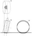 図10の左段に背面視を示すように、タイヤ70のキャンバ角θが変化すると、一点鎖線にて示すタイヤ70の回転軸から路面gまでの距離mは、下記式(5)のようになる。ここで、wはタイヤの半幅(幅の1/2)を表し、Rは上述した無負荷半径R、rはタイヤ静荷重半径を表している。  When the camber angle θ of the