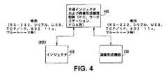 別の代替の実施形態において、制御コンソール、および、インジェクタおよび画像形成装置は、ワイヤ式およびワイヤレスの両方の通信プロトコルを使用して、互いに作用的に接続され通信することができる。そのような通信プロトコルは、シリアル通信プロトコル、例えば、I2C、ACCESS.バス、RS−232、ユニバーサルシリアルバス(USB)、IEE−488(GPIB)、LAN/インターネットプロトコル、例えば、TCP/IP、ワイヤレスプロトコル、例えば、802.11x、および、ブルートゥース等を含むが、それらに限定されない。通信プロトコルは、独自仕様のシステムも含むことができる。制御コンソールはまた、専用通信チャネルを備えた装置に接続されることもできる。これに関して、図4は、共通制御コンソールを装置へ接続するのに使用することができる専用通信チャネル420、440を、システムが含んでもよいことを例示する。あるいは、インジェクタおよび画像形成機器は、異なる通信プロトコルを使用して共通制御コンソールと通信することができる。例えば、シリアルデータ通信チャネルを使用し、共通制御コンソールとインジェクタ装置との間でデータを移送することができ、TCP/IPネットワークは、共通制御コンソールと画像形成機器との間でデータを移送するために使用することができる。  In another alternative embodiment, the control console and the injector and imaging device can be operatively connected and communicated with each other using both wired and wireless communication protocols. Such communication protocols include serial communication protocols such as I2C, ACCESS. Includes Bus, RS-232, Universal Serial Bus (USB), IEEE-488 (GPIB), LAN / Internet protocol such as TCP / IP, wireless protocol such as 802.11x, Bluetooth, etc. It is not limited. Communication protocols can also include proprietary systems. The control console can also be connected to a device with a dedicated communication channel. In this regard, FIG. 4 illustrates that the system may include