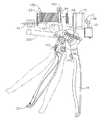 図17〜図22は、別の実施形態に従った閉鎖トリガーロック機構を示している。この実施形態に示されているように、閉鎖トリガー18は、可撓性長手アーム176を含む。このアーム176は、そこから延びる横方向ピン178を含む。アーム176およびピン178は、例えば、成型プラスチックから作られることができる。ハンドル6のピストルグリップ部分26は、横方向に延びるウエッジ182が配置された開口180を含む。閉鎖トリガー18が引かれると、図17および図18に示されているように、ピン178がウエッジ182に係合して、ウエッジ182の下面184によって下側に押される(すなわち、アーム176が時計回りの方向に回転する)。ピン178が下面184を完全に通過すると、アーム176に対する時計回りの方向の力がかからなくなり、図19に示されているように、ピン178が、ウエッジ182の後側のノッチ186内に受容されるように、反時計回りの方向に回転して、閉鎖トリガー18がロックされる。ピン178は、ウエッジ184から延びる可撓性ストッパー188によってそのロック位置の所定の位置に保持される。  FIGS. 17-22 illustrate a closure trigger locking mechanism according to another embodiment. As shown in this embodiment, the