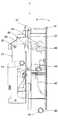 図3に示す開閉カバー61の閉状態では、開閉カバー61に設けたロック部材66は、装置本体51に設けたロック受け部材56に係合している。ロック受け部材56は、回転軸58によって装置本体51に回転自在に支持されるとともに、図示しない捩りバネによって、図3の時計回り方向に付勢されている。これによって、ロック受け部材56のフック部とロック部材66のフック部が係合して、開閉カバー61の閉状態を保持することになる。尚、ロック部材66が、回転軸によって回転自在に支持され、捩りバネによって付勢され、ロック受け部材56がロック部材66に係合するように構成してもよい。  In the closed state of the opening /