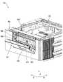 図6(1A)、(2A)に示すように、一方側の案内面67aには、当接部68が案内面67aから突出して形成される。当接部68は、案内面67aの、開閉カバー61の閉位置の直前に相当する位置に配置される。また、一方側の案内面67aと他方側の案内面67bは同じ高さhに形成され、当接部68は一方側の案内面67aから突出している。  As shown in FIGS. 6A and 6A, a