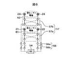 図6に示すように、スイッチ回路56は、電極21,22への電気配線61をオンオフするスイッチ56aと、電極23,24への電気配線62をオンオフするスイッチ56bとからなっている。換言すれば、スイッチ回路56は、排尿検知センサをオンオフするスイッチ56aと、排便検知センサをオンオフするスイッチ56bとからなっている。なお、図6は図1の排泄物検知センサ20の電気系統を模式的に示す図である。  As shown in FIG. 6, the