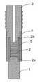 また、本例の圧電モジュールは、全体の形状が円柱状、角柱状等の柱状である。従って、先頭ピン1、差込具3および圧電素子2は、全体的な形状が円柱状、角柱状等の柱状である。また、外筒4および内筒5は、全体的な形状が円筒状、角筒状等の筒状である。  In addition, the piezoelectric module of this example has a columnar shape such as a columnar shape or a prismatic shape as a whole. Therefore, the