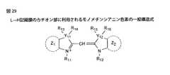 一方、原理的には記録/再生用レーザ光源波長の二乗に反比例して密度が上げられるので、記録/再生用に用いられるレーザ光源波長は短い方が望ましい。高密度化した次世代の光ディスクが近年開発されているが、ここでは、記録または再生用のレーザ光光源波長は405nm近傍(つまり355nmから455nmの範囲)が使われる事を想定している。650nmの光で最適化された有機色素記録材料は使用する光が620nmより短くなると、記録/再生特性が歴然と変化する。そのため、次世代の光ディスクの記録材料として620nm用の有機色素材料を用いることができない。 On the other hand, in principle, since the density is increased in inverse proportion to the square of the recording / reproducing laser light source wavelength, it is desirable that the laser light source wavelength used for recording / reproducing is shorter. In recent years, high-density next-generation optical discs have been developed. Here, it is assumed that the wavelength of the laser light source for recording or reproduction is in the vicinity of 405 nm (that is, in the range of 355 nm to 455 nm). The organic dye recording material optimized with 650 nm light changes its recording / reproduction characteristics when the light used is shorter than 620 nm. Therefore, an organic dye material for 620 nm cannot be used as a recording material for the next generation optical disc.