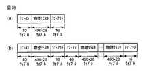 図96は記録ユニットブロックRUBの構造を示す。記録の単位はRUBと呼ばれる。同図(a)に示すように、RUBは40ウォブルのデータ・ラン・インと、496×28ウォブルの物理クラスタと、16ウォブルのデータ・ラン・アウトからなる。データ・ラン・インとデータ・ラン・アウトは完全にランダムな上書きを容易にするために十分なデータバッファリングを可能とする。RUBは1個1個記録されてもよいし、あるいは同図(b)に示すように複数のRUBが連続して記録されてもよい。 FIG. 96 shows the structure of the recording unit block RUB. The unit of recording is called RUB. As shown in FIG. 5A, the RUB is composed of a 40 wobble data run-in, a 496 × 28 wobble physical cluster, and a 16 wobble data run out. Data run-in and data run-out allow sufficient data buffering to facilitate completely random overwriting. One RUB may be recorded one by one, or a plurality of RUBs may be recorded continuously as shown in FIG.