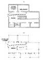 次に、ユーザの現在位置がレイアウト図中の構造物の中から外にでる場合について説明する。図11(a)に図示する一例のように屋内を入り口に向かって歩行している場合は、先に説明した平地歩行の場合と同様にユーザの現在位置を算出し、必要があれば同図(b)に示すレイアウトデータで位置補正を行なう。(2) End of Autonomous Navigation Sensing Process Next, a case where the current position of the user goes out of the structure in the layout diagram will be described. When walking indoors toward the entrance as in the example shown in FIG. 11A, the current position of the user is calculated in the same manner as in the case of walking on the flat ground described above, and if necessary, Position correction is performed with the layout data shown in FIG.