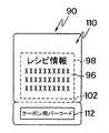 再び図4A及び4Bを参照すると、ラベルに供給される予め印刷された情報と店頭の秤りシステムによって印刷される情報の間には、重要な違いが存在する。詳述すれば、「予め印刷された」情報は店に供給された時からラベル上に存在し、従って別のラベル書式が採用/選択されるか、あるいはラベル表面の予め印刷されたメッセージを上書きするとか塗り潰すといった試みがなされない限り、店側の手で変更したり修正したりできない。図5の断面図を参照すると、ラベル構造体90は、ベース紙114によって形成されている。ベース紙の表側の方に、感熱組織で構成される層116がまず形成され、この感熱層116の上に、シール性組成物の層または被膜118が、感熱層116の滅失防止のために形成される。シール層118の上に、予め印刷された情報の、インクをベースとする層120が、そのように予め印刷されてあることが望ましい領域に形成される。証印122(例、選択可能なメッセージ)が秤りのサーマル印刷ヘッドにより印刷されたとき、こうしたメッセージは感熱層116に形成されるが、透明なシール層118を通して見えるようになっている。ベース紙114の裏側の方には、ラベルを商品の包装体に固定するために、接着性の組織である層124が形成される。ラベル90の裏面で、予め印刷された情報が与えられている領域では、ラベルのその部分が容易に包装体から分離できるように、接着剤層124は接着剤無効化層126で覆われる。接着剤無効化層は典型的には接着剤層の上に添加した白いインクで構成される。予め印刷された情報(例、クーポン用バーコードまたはレシピ)の、インクをベースとする層128が接着剤無効化層の上にその後添加される。図6を参照すると、ラベル構造体90による補充ロール130の典型例が示されている。補充ロールは裏打ち材132を含み、ラベル構造体90の接着面が裏打ち材に貼付されても、秤りから排出し商品の包装体に貼付するに当たって容易に剥がせるように、裏打ち材132はシリコン剥離層134を塗布されている。