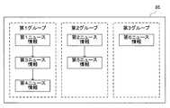 例えば図8に示す画像の場合、互いの基準領域が重なるようなニュース地点の組は存在しないので、3つのニュース地点53a〜55aは、それぞれ別のグループに設定される。つまり、図8では、1つのグループは1つのニュース情報に対応し、ニュース地点52(札幌)に関連付けられたニュース情報からなるグループと、ニュース地点53(東京)に関連付けられたニュース情報からなるグループと、ニュース地点54(京都)に関連付けられたニュース情報からなるグループという、3つのグループが設定される。 For example, in the case of the image shown in FIG. 8, there is no set of news points where the reference areas overlap each other, so the three news points 53a to 55a are set in different groups. That is, in FIG. 8, one group corresponds to one piece of news information, and a group composed of news information associated with the news location 52 (Sapporo) and a group composed of news information associated with the news location 53 (Tokyo). Then, three groups are set, a group consisting of news information associated with the news spot 54 (Kyoto).