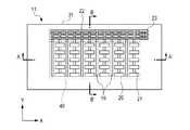 これらを530℃で焼成し,Y方向に延びる複数のストライプ状部材からなる隔壁部材19と、隔壁部材上及び隔壁部材上からメッシュ状の台座24上に渡って位置するストライプ状の抵抗部材21、及びX方向に延びるメッシュ状の台座24を形成した。(Process 5: Firing)