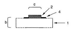 図2Bは、図2Aと同様にマイクロ域(c)の領域におけるバイオチップを通る断面図であるが、サンプル材料(2)はリンカー層(3)を介してサンプルキャリヤ(b)のマトリクス(1)に結合されている。リンカー層は、各マイクロ域の領域においてだけ存在し、隣接する領域にはリンカー分子はない。 FIG. 2B is a cross-sectional view through the biochip in the micro-region (c) as in FIG. 2A, but the sample material (2) passes through the linker layer (3) through the matrix (1) of the sample carrier (b). ). The linker layer exists only in the region of each micro region, and there is no linker molecule in the adjacent region.