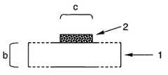 図2Aは、(b)が固体マトリクス(1)を含むサンプルキャリヤを表すとして、マイクロ域(c)の領域におけるバイオチップを通る断面図である。同図から分かるように、生物学的サンプル材料(2)は、マイクロ域(c)の領域においてだけサンプルキャリヤの表面に結合される。サンプルキャリヤ表面の隣接する領域にはサンプル材料はない。 FIG. 2A is a cross-sectional view through the biochip in the region of the micro region (c), where (b) represents a sample carrier comprising a solid matrix (1). As can be seen, the biological sample material (2) is bound to the surface of the sample carrier only in the region of the micro region (c). There is no sample material in the adjacent region of the sample carrier surface.