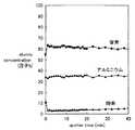 図4に、上記と同一の条件で別途作製したアルミニウムの酸窒化物をAESにより厚さ方向に組成の分析をした結果を示す。ここで、AESによるアルミニウムの含有量、酸素の含有量および窒素の含有量はそれぞれ、AES信号強度をもとに、各元素のピークの感度を考慮して求めた。ここでは、アルミニウムの原子%と酸素の原子%と窒素の原子%との合計が100原子%となるようにし、アルミニウム、酸素および窒素以外のアルゴンなどの他の微量に含まれる元素は除いている。 FIG. 4 shows the result of analyzing the composition of aluminum oxynitride separately produced under the same conditions as described above in the thickness direction by AES. Here, the aluminum content, the oxygen content, and the nitrogen content by AES were determined in consideration of the peak sensitivity of each element based on the AES signal intensity. Here, the total of atomic percent of aluminum, atomic percent of oxygen and atomic percent of nitrogen is set to 100 atomic percent, and other elements contained in trace amounts such as argon other than aluminum, oxygen and nitrogen are excluded. .