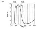 また、「半値波長」は、フィルタの分光特性曲線において、光の透過が抑制された短波長側から光を透過する長波長側にかけて分光特性曲線が立ち上がるところにおいて、透過率が50%となる光の波長を意味する。すなわち、本発明に用いるフィルタは後述する図5に示すように略S字状となった分光特性曲線を有する。 The “half-value wavelength” is a light whose transmittance is 50% in the spectral characteristic curve of the filter where the spectral characteristic curve rises from the short wavelength side where light transmission is suppressed to the long wavelength side where light is transmitted. Means the wavelength. That is, the filter used in the present invention has a spectral characteristic curve that is substantially S-shaped as shown in FIG.