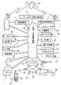 電子行政群49は、たとえば市役所や税務署あるいは中央官庁等の行政を電子化したものである。XMLストア50とは、XMLによる統一されたデータ構造によってデータを格納するとともに、必要に応じてデータの要求者に所定のデータを提供するデータベースのことである。XMLストア50には、ユーザの各種個人情報やユーザエージェント(エージェント用知識データを含む)を格納している。金融機関群7やユーザからXMLストア50にアクセスがあった場合には、本人認証を行なってセキュリティを保ったうえで、必要なデータを提供できるように構成されている。コンテンツプロバイダ群51とは、映像、文字、音等の種々のコンテンツをネットワークを通じて提供する業者群のことである。交通整理を行なうための信号機52も、広域・大容量中継網43に接続され、遠隔制御できるように構成されている。  The