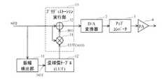 また、例えば、フィードバック信号から抽出された歪信号成分を小さくするアルゴリズムを用いて、プリディストーションの学習のための係数を更新することにより、従来の波形比較法と比べて、複雑な処理(演算)を不要として回路規模を小さくすることができ、このような処理の簡易化によって、プリディストーションの学習のための係数を効率的に収束させることができ、収束に要する時間を短縮化することができる。 In addition, for example, by using an algorithm for reducing the distortion signal component extracted from the feedback signal, the coefficient for learning the predistortion is updated, so that complicated processing (calculation) is performed as compared with the conventional waveform comparison method. The circuit scale can be reduced, and the simplification of such processing enables the coefficients for predistortion learning to be efficiently converged and the time required for convergence to be shortened. .