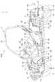 図8に拡大して示すように、内燃機関13のシリンダヘッド18の後部には、スロットルバルブユニット19がインテークマニホールド20を通じて接続されており、シリンダヘッド18の前部には、後述する排気管120が接続されている。スロットルバルブユニット19の後部には、後述する第1及び第2エアクリーナ室111、112を備えたエアクリーナ110がコネクティングチューブ117を介して接続される。また、スロットルバルブユニット19には、燃料タンク12から延びる燃料配管21と、バッテリケース22やECU26等を備えたバッテリケース22から配索されたワイヤハーネス23が接続されている。  As shown in an enlarged view in FIG. 8, a