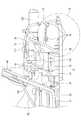 なお、図1中、26はフロントカバー、27はインストルメントパネル、28は、中央のカバー部材28aと左右一対のカバー部材28bとからなるセンターコンソールカバーである。  In FIG. 1, 26 is a front cover, 27 is an instrument panel, and 28 is a center console cover comprising a