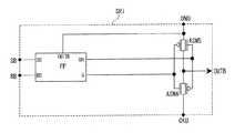 FIG. 5A is a circuit diagram illustrating a configuration of the flip-flop according to the third embodiment. As shown in the figure, the FF 301 includes a P-channel transistor p14 and an N-channel transistor n13 that constitute a CMOS circuit, a P-channel transistor p16 and an N-channel transistor n15 that constitute a CMOS circuit, P-channel transistors p13 and p15, N-channel transistors n14 and n16, an SB terminal, an RB terminal, an INITB terminal, a Q terminal and a QB terminal, and a gate of p14, a gate of n13, a drain of p16, a drain of p15, a drain of p15, and a Q And the drain of p14, the drain of n13, the gate of p16, the gate of n15, the drain of p13, and the QB terminal are connected, the source of n13 and the drain of n14 are connected, and the source of n15 And n16 drain connected The SB terminal is connected to the source of p13, the gate of p15, and the gate of n16, the RB terminal is connected to the gate of p13 and the gate of n14, the INITB terminal is connected to the source of p16, and p14 and p15 The source is connected to VDD and the sources of n14 and n16 are connected to VSS. Here, p14, n13, p16 and n15 constitute a latch circuit LC, p15 functions as a set transistor ST, p13 functions as a reset transistor RT, and n14 and n16 function as a latch release transistor LRT.