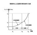 図1と図2は、従来のETの構成と動作原理を示す図である。ETでは、エンベロープ抽出部により送信信号から抽出した包絡線(エンベロープ)を電圧制御信号生成部により電圧制御信号としてデジタル・アナログコンバータを介して可変電源に入力し、電力増幅器のドレイン電圧を制御する。ピーク電力が出力可能な電圧を固定的に電力増幅器に供給する(図2の「固定バイアス時の電圧」)のではなく、瞬時の信号電力が出力可能な電圧を可変的に供給する(図2の「ET動作時のドレイン電圧」)。これにより、電力増幅器を常時飽和領域に近い領域で動作させ、図2の「ET動作で削減される電力」を削減することにより、電力効率の改善を図っている。ETでは、規格値以下の帯域外歪レベルを保ちつつ、効率を最大化するような電圧制御信号を生成することが重要である。 1 and 2 are diagrams showing the configuration and operating principle of a conventional ET. In ET, an envelope (envelope) extracted from a transmission signal by an envelope extraction unit is input as a voltage control signal by a voltage control signal generation unit to a variable power source via a digital / analog converter, and the drain voltage of the power amplifier is controlled. Rather than supplying a voltage capable of outputting peak power to the power amplifier ("voltage at a fixed bias" in FIG. 2), a voltage capable of outputting instantaneous signal power is variably supplied (FIG. 2). “Drain voltage during ET operation”). Thus, the power amplifier is always operated in a region close to the saturation region, and the “power reduced by the ET operation” in FIG. 2 is reduced, thereby improving the power efficiency. In ET, it is important to generate a voltage control signal that maximizes efficiency while maintaining an out-of-band distortion level equal to or less than a standard value.