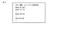 一方で、特徴情報に含まれた特定背景画像の濃度と色を示す情報から、コントラスト拡張係数を算出する。例えば、コントラスト拡張係数の一覧は、大量のデータを元に実験的に事前に求めておくもので、図5に示すようなリストである。つまり、所定の背景の色と濃度の変化に対応してこの所定の背景上に形成された蛍光バーコードの減衰度が変化するデータから算出されたコントラスト拡張係数の一覧を登録しておく。このコントラスト拡張係数の一覧を参照して、例えば背景の色が黒で背景の濃度が15の場合のコントラスト拡張係数を求める。コントラスト拡張係数が求められたら、輝度0からそのコントラスト拡張係数までの範囲を256階調(0〜255)に引き伸ばす処理をする。この処理は背景画像領域に対して実施する(或いは第2の画像全体に対して実施してもよい)。もし、引き伸ばし処理の際に、255を超えるようなケースがあれば、それは引き伸ばしによる飽和のため255にして良い。今回は引き伸ばし処理では線形変換を採用するが、非線形の変換でももちろん構わない。図6は、コントラスト拡張後の第2の画像の一例を示す図である。図6に示すように、減衰していたバーの鮮明度が向上しているのが分かる。 On the other hand, the contrast expansion coefficient is calculated from information indicating the density and color of the specific background image included in the feature information. For example, the list of contrast expansion coefficients is obtained in advance experimentally based on a large amount of data, and is a list as shown in FIG. That is, a list of contrast expansion coefficients calculated from data in which the attenuation of the fluorescent barcode formed on the predetermined background changes corresponding to changes in the color and density of the predetermined background is registered. With reference to this list of contrast expansion coefficients, for example, the contrast expansion coefficient when the background color is black and the background density is 15 is obtained. When the contrast expansion coefficient is obtained, a process from the luminance 0 to the contrast expansion coefficient is expanded to 256 gradations (0 to 255). This process is performed on the background image area (or may be performed on the entire second image). If there is a case that exceeds 255 in the stretching process, it may be set to 255 because of saturation due to stretching. This time, linear transformation is adopted for the enlargement processing, but non-linear transformation is of course acceptable. FIG. 6 is a diagram illustrating an example of the second image after contrast expansion. As shown in FIG. 6, it can be seen that the sharpness of the attenuated bar is improved.