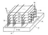 また、図5に示すように、上述したメモリセルアレイ1を複数積層した三次元構造とすることもできる。ここでは、シリコン基板21上に4層のメモリセルアレイCA0〜CA3を積層した例を示している。各メモリセルアレイのワード線WLは、ビア配線24により共通接続されて基板21上のロウ制御回路23に接続される。各メモリセルアレイCA0〜CA3のビット線BLは独立にそれぞれビア配線25を介して、基板21上のカラム制御回路22に接続される。  Further, as shown in FIG. 5, a three-dimensional structure in which a plurality of the above-described
