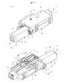 図6は駆動ギヤと駆動ケーブルとの噛み合い部分の構造を示す平面図であり、これらのケーブルガイド81,82はそれぞれギヤケース36の底面36cから突出するブロック状に形成されており、当該ギヤケース36と一体に形成された樹脂製となっている。  FIG. 6 is a plan view showing the structure of the meshing portion between the drive gear and the drive cable. These cable guides 81 and 82 are each formed in a block shape protruding from the