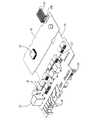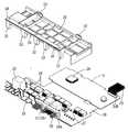 また、第1副基板12の表面(図3における左側面)には、プリント配線技術により導電路(図示せず)が形成されている。この導電路には、図4に示すように、機械式リレー25、半導体リレー26、ヒューズ27等の電子部品が接続されている。  A conductive path (not shown) is formed on the surface of the first sub-board 12 (left side in FIG. 3) by a printed wiring technique. As shown in FIG. 4, electronic components such as a