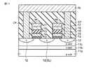 第1導電型の半導体基板(半導体領域)11内には、第2導電型のソース・ドレイン拡散層(ソース・ドレイン領域)12が互いに離間して配置される。半導体基板11は、例えば、シリコン基板である。ソース・ドレイン拡散層12は、半導体基板11内のウェル領域内に形成してもよい。  In the first conductivity type semiconductor substrate (semiconductor region) 11, second conductivity type source / drain diffusion layers (source / drain regions) 12 are arranged apart from each other. The