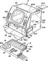 一方、透析装置本体2は、破線図示の主基部200と、副基部201とを取付用の基部としており、図示の樹脂製のカバーをそれぞれ設けるとともに、主基部200と、副基部201とを1〜2mm厚のアルミ金属板製としさらに随所に大型孔部を穿設することで軽量化を図っている。これらの基部に軽量樹脂製のカバーが固定される。また、例えば100メガバイト以上の記憶容量を有するメモリカード204が装置の背面から破線図示のカード読取装置203に対して装填可能に設けられており、表示部23の表示内容及び音声の変更や各国別の仕様変更を迅速に行えるように構成されている。また、患者データをメモリカード204に記録して、個別の患者に対応可能にしている。  On the other hand, the dialysis machine