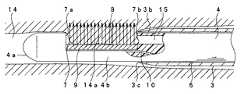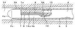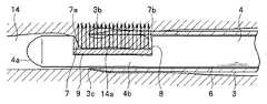 ところで、可撓性シース3を押し出して検体14aを切取ろうとした際に、検体14aとなる部位が先端エッジ3cにて切り込まれずにすり抜ける場合がある。検体14aとなる部位が先端エッジ3cにて切り込まれずにすり抜けた場合、先端エッジ3cが検体採取用凹部7の前部壁面7aに近接して、間口が狭まるに従い検体14aとなる部位は体内14側に逃げてしまい検体14aの採取に失敗することになる。  By the way, when the