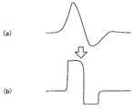 集積回路素子11,12の一方を波形整形回路として機能させた場合、図5(a)に示すような静電容量型超音波振動子アレイ8の各振動子に印加する超音波駆動信号を、例えば同図(b)に示すように、所定に矩形処理して出力する。又、集積回路素子11,12の他方をマルチプレクサとして機能させた場合、リード線13の線径をより細径化することができ、肺末梢等の極めて狭い体内内に挿入することが可能となる。尚、図6の符号14は被検者の体内、14aは体内14の目標部位から切取られる検体である。又、図6、図7の矢印は、超音波の出射方向を示す。  When one of the