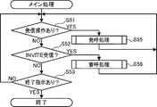図10から図14を参照して、上記の通信システム100の処理を実行するために各PC1が実行する処理について説明する。PC1のCPU10は、SIPサーバ2へ登録要求メッセージ「REGISTER」を送信してSIPサーバ2への登録が完了すると、図10に示すメイン処理を実行する。メイン処理では、CPU10は、呼出要求発信(発呼)を指示する操作が操作部19に対して行われたか否かを判断する(S51)。操作部19が操作されておらず、呼出要求発信の指示が入力されていなければ(S51:NO)、CPU10は、他のPC1から呼出要求「INVITE」を受信したか否かを判断する(S52)。「INVITE」を受信していなければ(S52:NO)、SIPサーバ2との間の接続の終了指示が操作部19に入力されたか否かを判断する(S53)。終了指示が入力されていなければ(S53:NO)、S51〜S53の判断が繰り返される。終了指示が入力されると(S53:YES)、メイン処理は終了する。 With reference to FIG. 10 to FIG. 14, a process executed by each