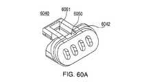 コネクター1140は、接点1142や付属ケーシング1143が載置されるコネクター板1141を備える。接点1142により、ヘッドセット1100を他のデバイスに対して、容易に電気的に接続することが可能になる。付属ケーシング1143を(高分子材料等の)非伝導性材料から形成するようにしてもよい。ケーシング1143で接点1142を取り囲むことにより、接点1142とコネクター板1141との間の電気的な接続を防ぐことができる。接点1142とケーシング1143とは、コネクター板1141の表面と実質的に同一平面上に位置し、接点、ケーシング、コネクター板の組み合わせにより、他のコネクターと係合する実質的に平坦な表面が形成される。コネクター板1141を強磁性体から形成し、図62Aないし図67Bを参照して後述する磁気コネクターのような磁気コネクターに対して付勢するようにしてもよい。コネクター板1141、接点1142、ケーシング1143並びに相手側磁気コネクターに関しては、後に図55Aないし図67Bを参照して詳述する。  The