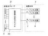 1,21 超音波プローブ、2 装置本体、3 アレイトランスジューサ、4 チャンネル形成部、5 入出力線、6 チャンネル接続部、7 信号線、8 Tx/Rx回路、9 圧電振動子、10 電極、11 制動材、12 音響整合層、13 音響レンズ、22 チャンネル形成・接続部、31 第1の装置本体、32 第2の装置本体、33 信号分配器、34,41 ユニット側コネクタ、35,42 フロントエンド、36,43 ビームフォーマ、37,44 バックエンド、38,45 モニタ、39,46 クロック・リトリガ回路、40,47 制御部、48 データバス、49 プローブコネクタ。 1,21 ultrasonic probe, 2 device main body, 3 array transducer, 4 channel forming unit, 5 input / output line, 6 channel connecting unit, 7 signal line, 8 Tx / Rx circuit, 9 piezoelectric vibrator, 10 electrode, 11 braking Material, 12 acoustic matching layer, 13 acoustic lens, 22 channel forming / connecting part, 31 first device main body, 32 second device main body, 33 signal distributor, 34, 41 unit side connector, 35, 42 front end, 36, 43 Beamformer, 37, 44 Back end, 38, 45 Monitor, 39, 46 Clock retrigger circuit, 40, 47 Control unit, 48 Data bus, 49 Probe connector.