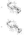 フロント部15は、左右方向へ架け渡されたフロントフレーム17と、同フロントフレーム17の両端部近傍に設けられているバイザー挟持部18,18に取り付られたバイザー部19とを備えている。  The
